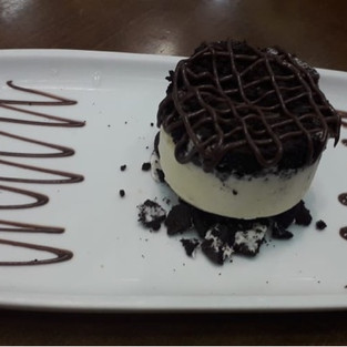 Como era o aniversário de Vanessa aqui do blog, ganhamos uma sobremesa delícia que consiste num sorvete de creme com biscoito Oreo triturado, uma calda de brigadeiro e não dá pra ver aí na foto, mas tem também um morango que super faz uma diferença no conjunto da obra da sobremesa! O azedinho dele dá uma mega toque delicioso.